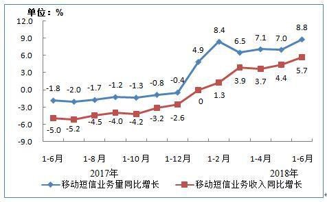 上半年全國移動電話去話通話時長 12819 億分鐘,同比下降 4.6%,不過隨著服務(wù)登錄和身份認證等服務(wù)的普及,短信又活過來了,上半年全國發(fā)送短信量同比增長 8.8%,相關(guān)收入 195 億元,同比增長 5.7%。