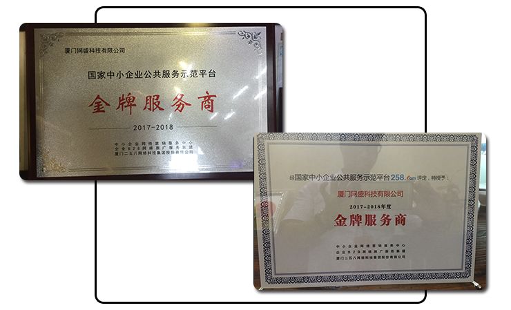 8月11日網(wǎng)盛科技獲得由中小企業(yè)網(wǎng)絡(luò)營銷服務(wù)中心、企業(yè)B2B網(wǎng)絡(luò)推廣聯(lián)盟聯(lián)合頒發(fā)“頒發(fā)國家中小企業(yè)公共服務(wù)示范平臺金牌服務(wù)商牌匾”這代表著對網(wǎng)盛科技在助力中小企業(yè)網(wǎng)絡(luò)營銷工作的高度認可和肯定。