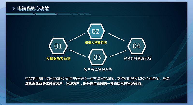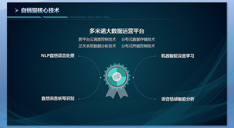 自銷貓是由廈門多米諾大數(shù)據(jù)研發(fā)的智能電銷機器人?;诙嗝字Z大數(shù)據(jù)運營平臺,利用語音識別、自然語言處理、語意情感分析、機器深度學習等技術(shù)實現(xiàn)完整的人機智能交互對話,滿足企業(yè)在產(chǎn)品銷售、項目招商、服務(wù)推介、市場推廣、活動傳達、調(diào)查回訪、續(xù)費提醒、貸款催收等各種商業(yè)場景下的電話營銷服務(wù)。