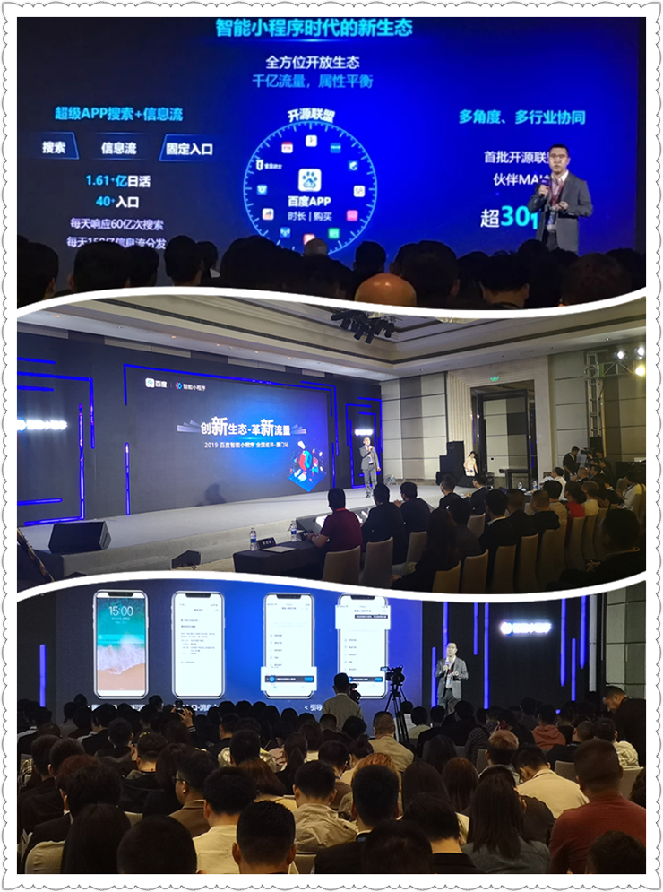 百度負責人徐亞楠在現(xiàn)場向各企業(yè)負責人描述了智能小程序是基于APP的一種形態(tài),其中核心能力是比網(wǎng)頁更加平滑順暢的互動性體驗、搜索+信息流雙引擎 的全域千億流量、讓開發(fā)者盡情施展的AI智能能力、提升用戶創(chuàng)業(yè)變現(xiàn)的開放生態(tài)。