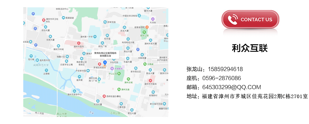 版權(quán)所有 ◎ 2019 漳州市利眾互聯(lián)網(wǎng)絡(luò)科技有限公司 All Rights Reserved E-mail:645303299@qq.com 電話(huà):0596-2876086